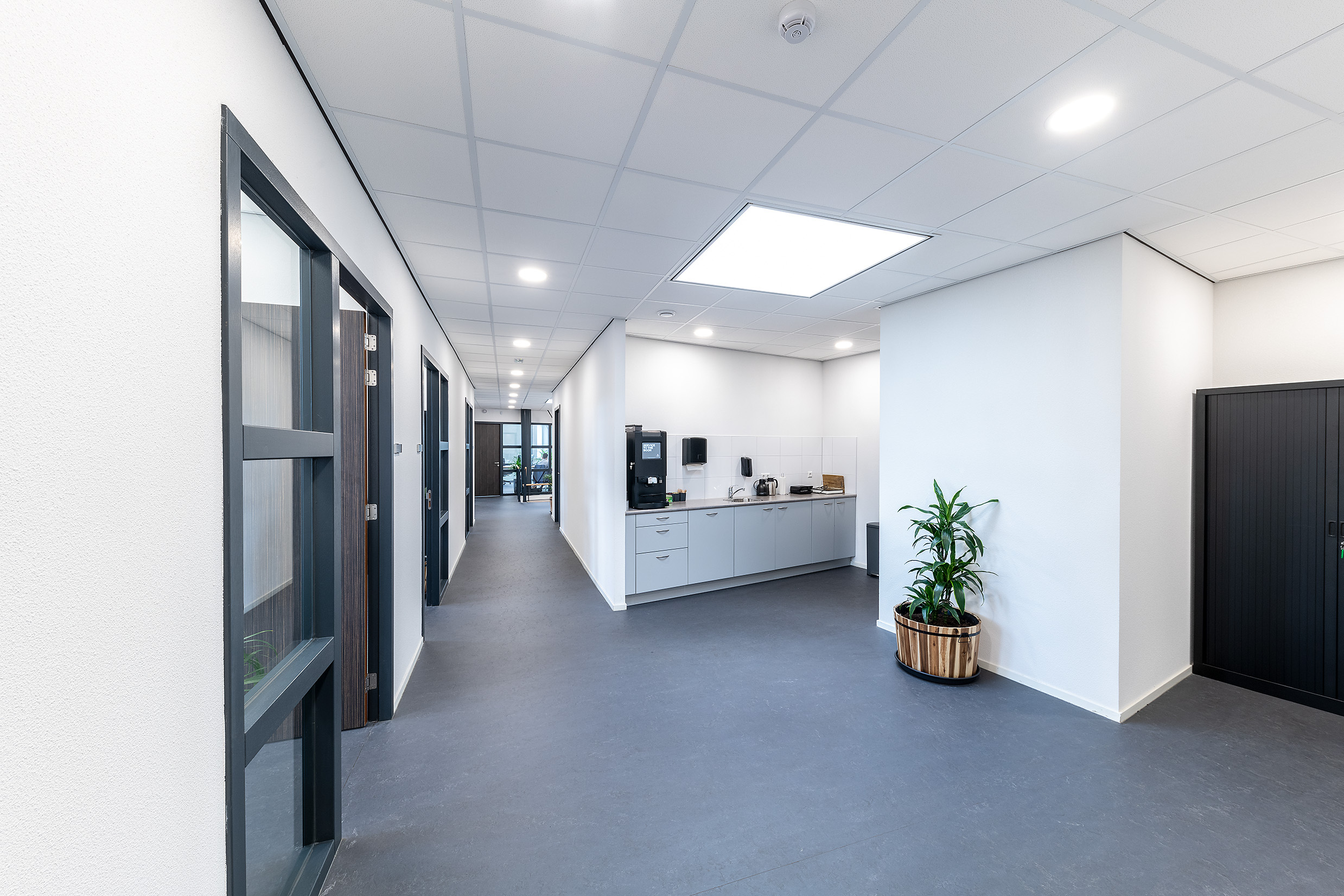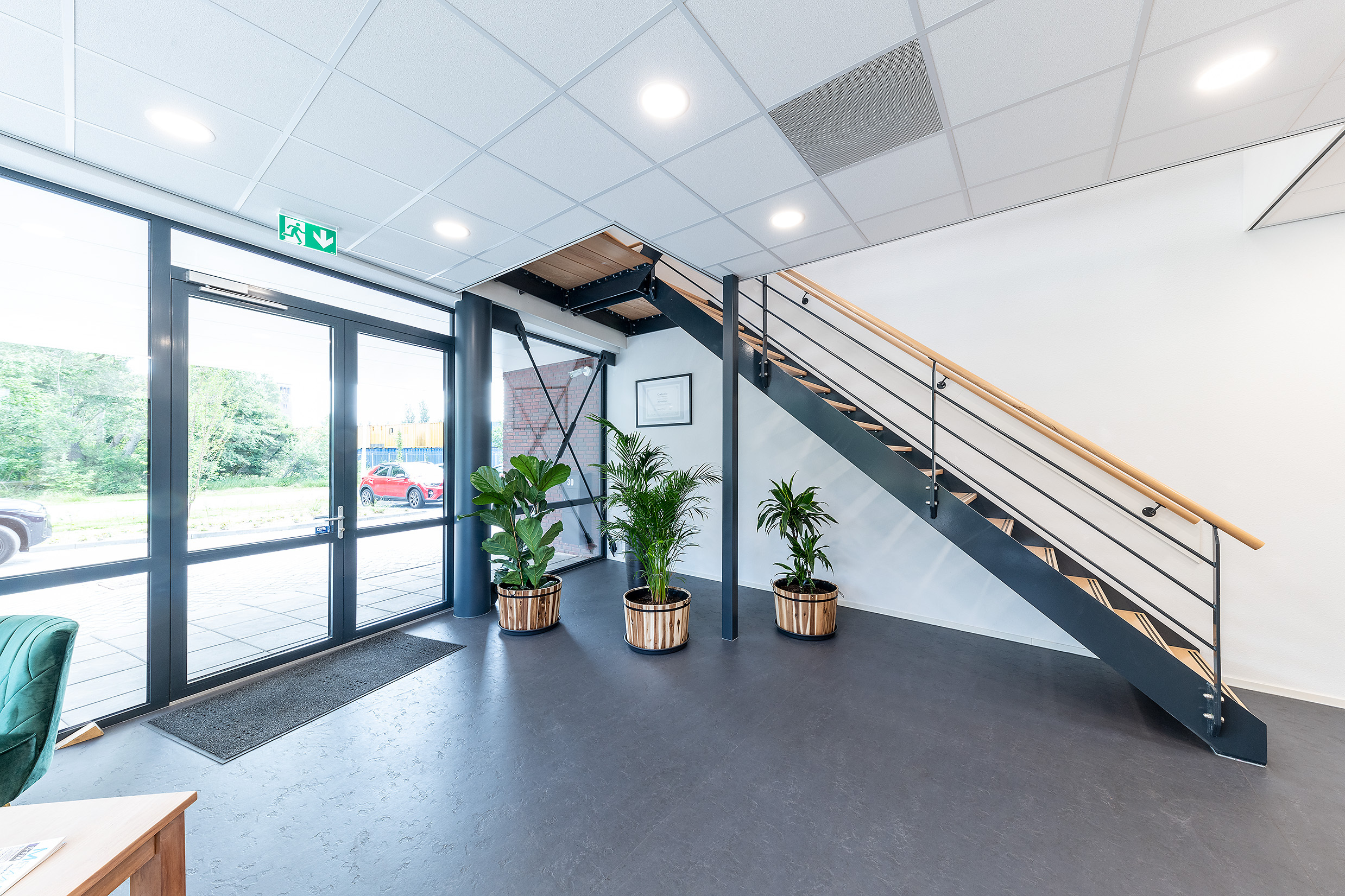 Hoe strak en klassiek het pand er van buiten uit ziet, hoe welkom en modern het aanvoelt. Het is uitwerkt tot in de kleinste details, zoals witte doorlopende kaders aan het kantoor, een douche- en omkleedruimte voor personeel en diverse kantoorruimtes. Ook zijn wij verantwoordelijk geweest voor de aanleg van de technische installaties van het kantoor en de productieruimte. Daarnaast hebben we de omgevingsvergunningen geregeld. Het pand is volledig turn-key opgeleverd, dus laat de verhuiswagen maar komen!
