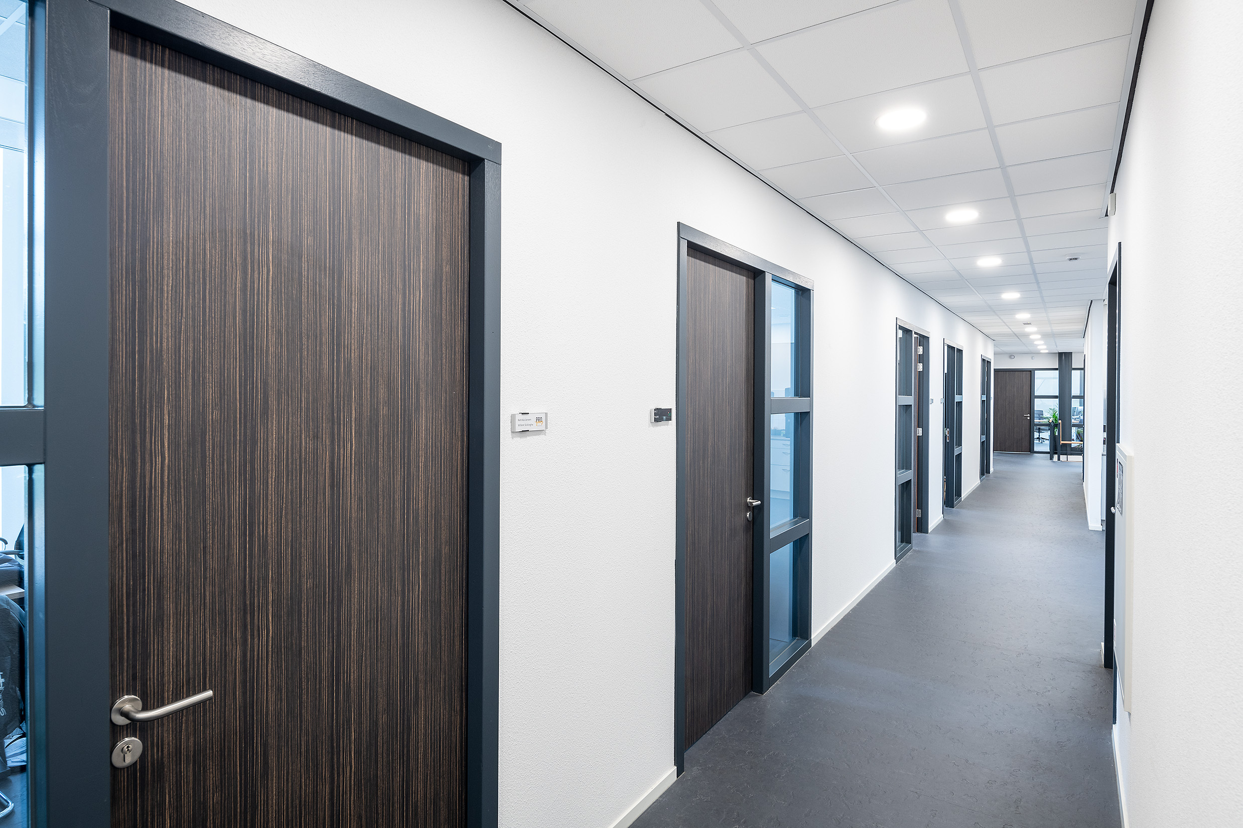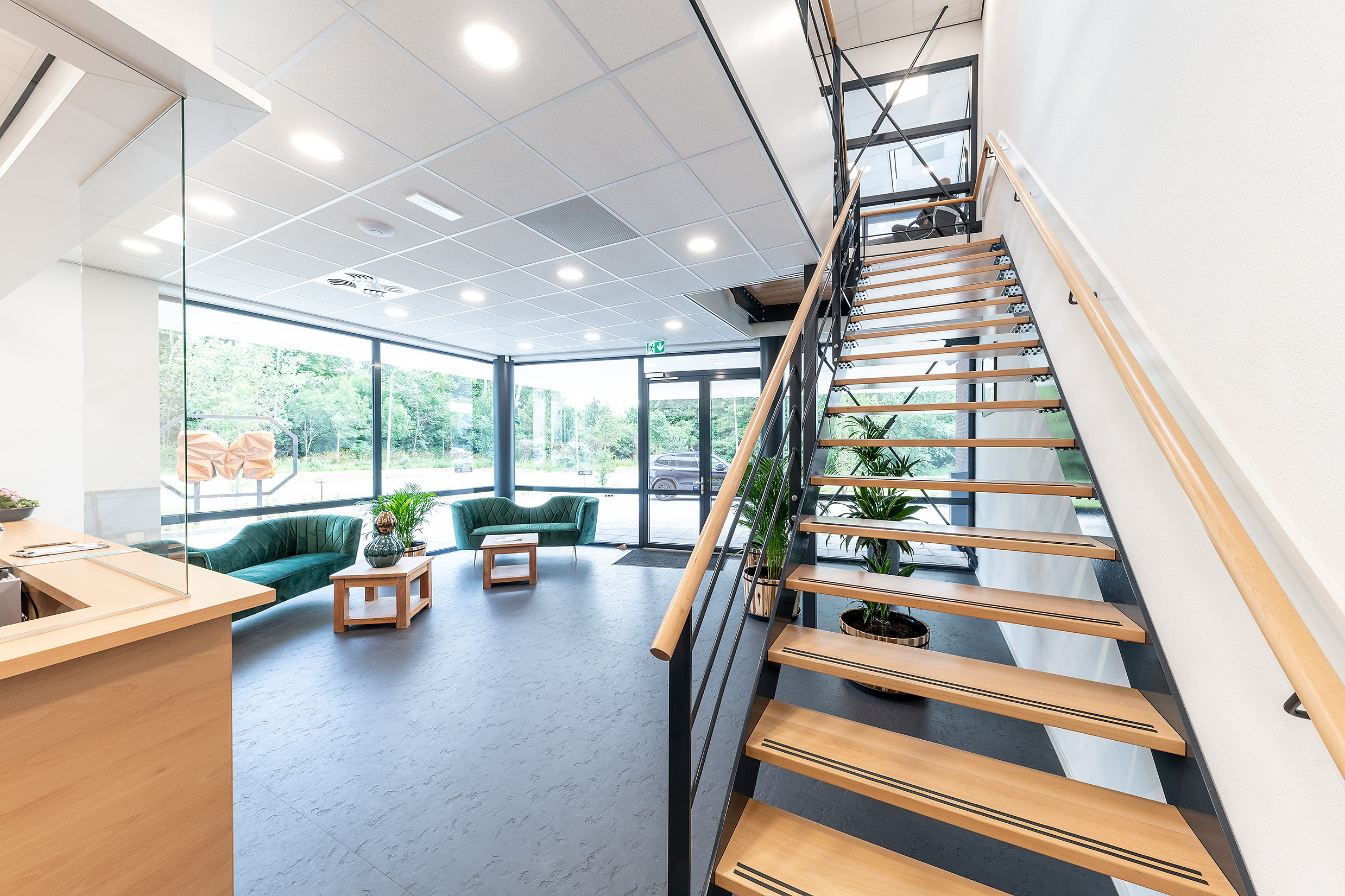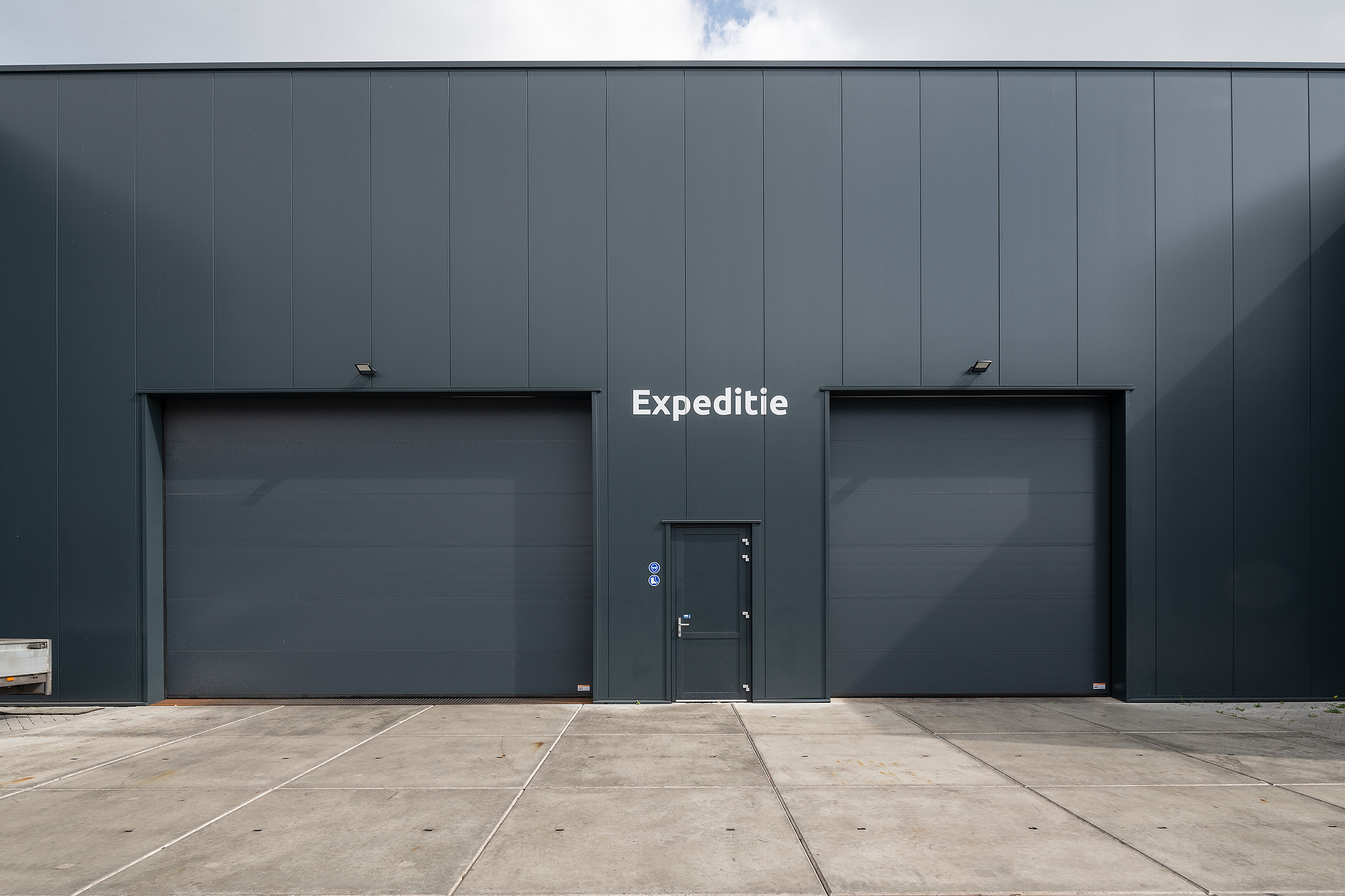 Het grote pand is zo opgedeeld dat alle vier de bedrijven een eigen bedrijfsruimte hebben. Het voordeel? Zo werkt elk bedrijf ongestoord met hun eigen team in een eigen ruimte. Het pand bestaat uit twee bouwlagen waardoor er extra ruimte gecreëerd is voor kantoren. De opvallende overhangende gevel zorgt voor een dynamische en futuristische look.